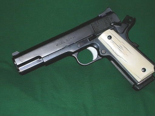 I don't know who smithed it or even who owns it but Tony Kanaley has posted pictures elsewhere of a 1911 with ivory grip panels that is as pretty as a pistol can be - verges on loving the sword for its sharpness but I can stand that.